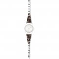 Dit Swatch horlogebandje is gemaakt van roestvrij staal en wordt aan het horloge bevestigd door middel van stalen pennen. De band heeft een breedte van 17 mm en wordt gesloten door middel van een sieraadsluiting. De band heeft geen rechte aanzet wat betekent dat deze band alleen geschikt is voor de horloges die hieronder worden vermeld.