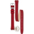 Dit Swatch horlogebandje is gemaakt van textiel op leer en wordt aan het horloge bevestigd door middel van stalen pennen. De band heeft een breedte van 12 mm en wordt gesloten door middel van een gesp. De band heeft geen rechte aanzet wat betekent dat deze band alleen geschikt is voor de horloges die hieronder worden vermeld.