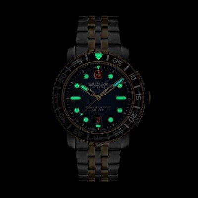 Het horloge is 20ATM. Dit betekent dat het horloge geschikt is om mee te duiken. Verder wordt het horloge geleverd met Swiss Military 3+2.