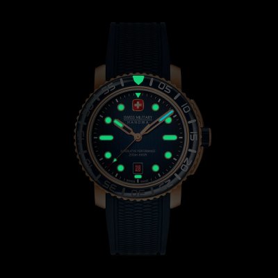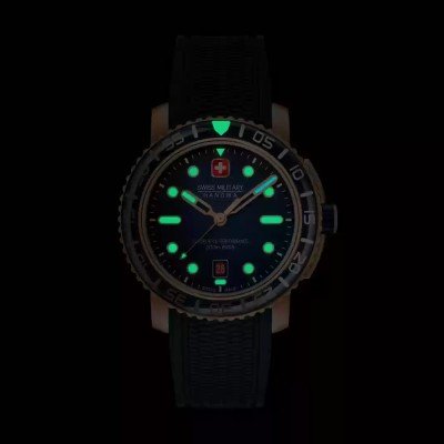 Het horloge is 20ATM. Dit betekent dat het horloge geschikt is om mee te duiken. Verder wordt het horloge geleverd met Swiss Military 3+2.