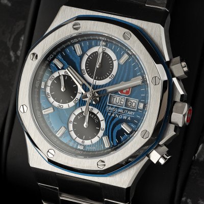 Dit Swiss Military Hanowa horloge heeft een kast gemaakt van Staal zilver met een diameter van 43 mm en is voorzien van een Staal zilver band. In de kast bevindt zich een ETA kwaliteitsuurwerk en is afgewerkt met Saffierglas.