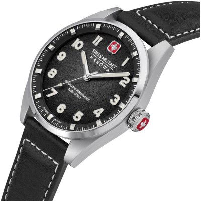 Dit Swiss Military Hanowa horloge heeft een kast gemaakt van Staal zilver met een diameter van 42 mm en is voorzien van een leer band. In de kast bevindt zich een Ronda kwaliteitsuurwerk en is afgewerkt met Saffierglas.