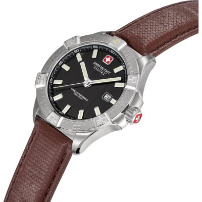 Dit Swiss Military Hanowa horloge heeft een kast gemaakt van Staal zilver met een diameter van 42 mm en is voorzien van een leer band. In de kast bevindt zich een Ronda kwaliteitsuurwerk en is afgewerkt met Saffierglas.