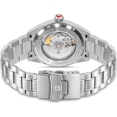 Dit Swiss Military Hanowa horloge heeft een kast gemaakt van Staal zilver met een diameter van 41 mm en is voorzien van een Staal zilver band. In de kast bevindt zich een Soprod kwaliteitsuurwerk en is afgewerkt met Saffierglas.