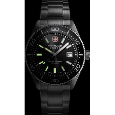 Dit Swiss Military Hanowa horloge heeft een kast gemaakt van Staal zilver met een diameter van 43 mm en is voorzien van een Staal zilver band. In de kast bevindt zich een Ronda kwaliteitsuurwerk en is afgewerkt met Saffierglas.