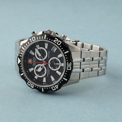 Dit Swiss Military Hanowa horloge heeft een kast gemaakt van Staal zilver met een diameter van 44 mm en is voorzien van een Staal zilver band. In de kast bevindt zich een ETA kwaliteitsuurwerk en is afgewerkt met Saffierglas.