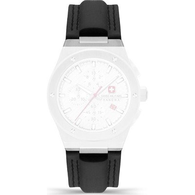 Dit Swiss Military Hanowa horlogebandje is gemaakt van leer en wordt aan het horloge bevestigd door middel van stalen pennen. De band heeft een breedte van 26 mm en wordt gesloten door middel van een gesp. De band heeft geen rechte aanzet wat betekent dat deze band alleen geschikt is voor de horloges die hieronder worden vermeld.