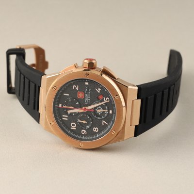 Dit Swiss Military Hanowa horloge heeft een kast gemaakt van Staal zilver met een diameter van 43 mm en is voorzien van een Rubber band. In de kast bevindt zich een Ronda kwaliteitsuurwerk en is afgewerkt met Saffierglas.