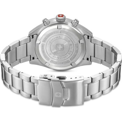 Dit Swiss Military Hanowa horloge heeft een kast gemaakt van Staal zilver met een diameter van 43 mm en is voorzien van een Staal zilver band. In de kast bevindt zich een Ronda kwaliteitsuurwerk en is afgewerkt met Saffierglas.