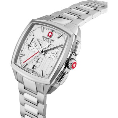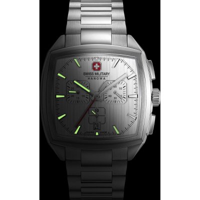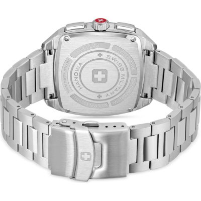 Dit Swiss Military Hanowa horloge heeft een kast gemaakt van Staal zilver met een diameter van 40 mm en is voorzien van een Staal zilver band. In de kast bevindt zich een Ronda kwaliteitsuurwerk en is afgewerkt met Saffierglas.