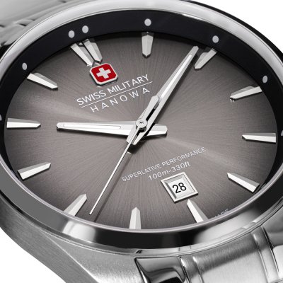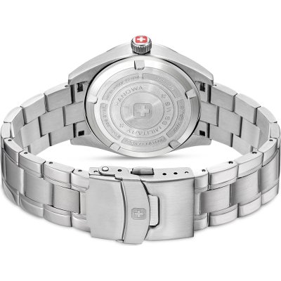 Dit Swiss Military Hanowa horloge heeft een kast gemaakt van Staal zilver met een diameter van 42 mm en is voorzien van een Staal zilver band. In de kast bevindt zich een Ronda kwaliteitsuurwerk en is afgewerkt met Saffierglas.