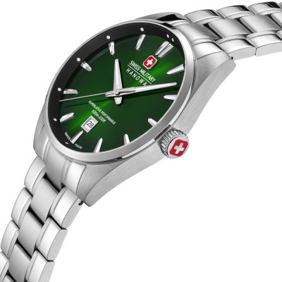 Dit Swiss Military Hanowa horloge heeft een kast gemaakt van Staal zilver met een diameter van 42 mm en is voorzien van een Staal zilver band. In de kast bevindt zich een Ronda kwaliteitsuurwerk en is afgewerkt met Saffierglas.