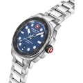 Dit Swiss Military Hanowa horloge heeft een kast gemaakt van Staal zilver met een diameter van 40 mm en is voorzien van een Staal zilver band. In de kast bevindt zich een Ronda kwaliteitsuurwerk en is afgewerkt met Saffierglas.