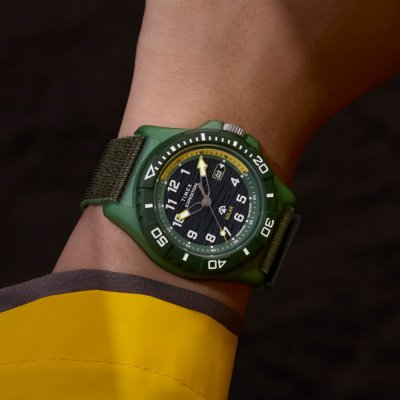 Dit Timex horloge heeft een kast gemaakt van Tide Ocean plastic met een diameter van 46 mm en is voorzien van een Tide Ocean plastic band. In de kast bevindt zich een Timex kwaliteitsuurwerk en is afgewerkt met Mineraalglas.