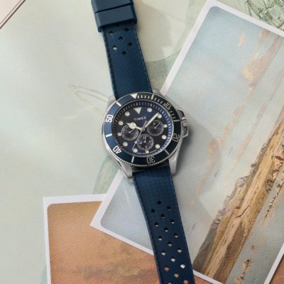 Dit Timex horloge heeft een kast gemaakt van Metaal Legering met een diameter van 43 mm en is voorzien van een Resin band. In de kast bevindt zich een Timex kwaliteitsuurwerk en is afgewerkt met Mineraalglas.
