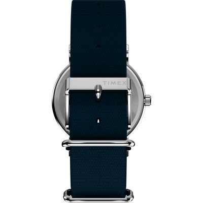 Dit Timex horloge heeft een kast gemaakt van Metaal Legering met een diameter van 38 mm en is voorzien van een textiel band. In de kast bevindt zich een Timex kwaliteitsuurwerk en is afgewerkt met Mineraalglas.