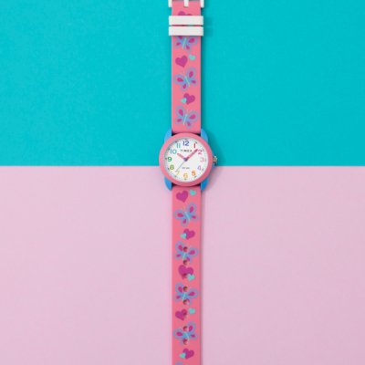 Dit Timex horloge heeft een kast gemaakt van Resin met een diameter van 30 mm en is voorzien van een Rubber band. In de kast bevindt zich een Timex kwaliteitsuurwerk en is afgewerkt met Acrylglas.