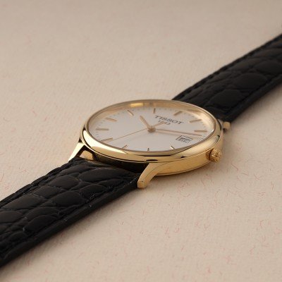 De Tissot Nordic is een ingetogen en chique horloge met een 18kt gouden kast. Het pure, bijna minimalistische uiterlijk maakt het luxe horloge geschikt om elke dag te dragen. Het horloge wordt aangedreven door een Zwitsers ETA F05.412 kwartsuurwerk voor een uitstekende, betrouwbare tijdmeting. Het is op de markt gebracht als herenhorloge, maar met een diameter van 33,5 mm is het horloge ook zeer geschikt voor dames.