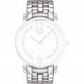 Dit Tissot horlogebandje is gemaakt van roestvrij staal en wordt aan het horloge bevestigd door middel van bandpennen. De band heeft een breedte van 20 mm en wordt gesloten door middel van een vouwsluiting met drukknoppen. De band heeft geen rechte aanzet wat betekent dat deze band alleen geschikt is voor de horloges die hieronder worden vermeld.