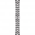 Dit Tissot horlogebandje is gemaakt van roestvrij staal en wordt aan het horloge bevestigd door middel van bandpennen. De band heeft een breedte van 21 mm en wordt gesloten door middel van een vlindersluiting met drukknoppen. De band heeft geen rechte aanzet wat betekent dat deze band alleen geschikt is voor de horloges die hieronder worden vermeld.