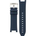 Dit Tissot horlogebandje is gemaakt van siliconen en wordt aan het horloge bevestigd door middel van schroef. De band heeft een breedte van 24 mm en wordt gesloten door middel van een gesp. De band heeft geen rechte aanzet wat betekent dat deze band alleen geschikt is voor de horloges die hieronder worden vermeld.