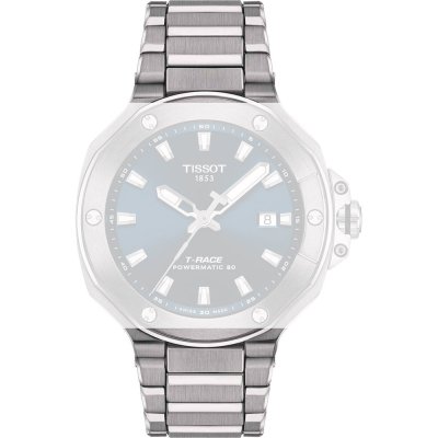 Dit Tissot horlogebandje is gemaakt van roestvrij staal en wordt aan het horloge bevestigd door middel van schroef. De band heeft een breedte van 22 mm en wordt gesloten door middel van een vouwsluiting met drukknoppen en veiligheidsklep. De band heeft geen rechte aanzet wat betekent dat deze band alleen geschikt is voor de horloges die hieronder worden vermeld.