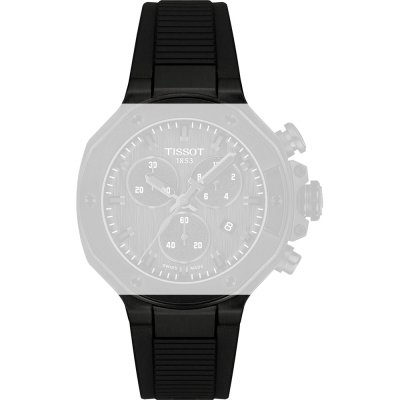 Dit Tissot horlogebandje is gemaakt van siliconen en wordt aan het horloge bevestigd door middel van schroef. De band heeft een breedte van 20 mm en wordt gesloten door middel van een gesp. De band heeft geen rechte aanzet wat betekent dat deze band alleen geschikt is voor de horloges die hieronder worden vermeld.