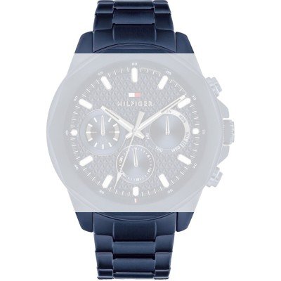 Dit Tommy Hilfiger horlogebandje is gemaakt van roestvrij staal en wordt aan het horloge bevestigd door middel van bandpennen. De band heeft een breedte van 22 mm en wordt gesloten door middel van een vouwsluiting met drukknoppen. De band heeft geen rechte aanzet wat betekent dat deze band alleen geschikt is voor de horloges die hieronder worden vermeld.