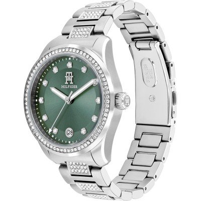Dit Tommy Hilfiger horloge heeft een kast gemaakt van Staal zilver met een diameter van 36 mm en is voorzien van een Staal zilver band. In de kast bevindt zich een Seiko Instruments Inc. kwaliteitsuurwerk en is afgewerkt met Mineraalglas.