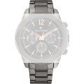 Dit Tommy Hilfiger horlogebandje is gemaakt van roestvrij staal en wordt aan het horloge bevestigd door middel van bandpennen. De band heeft een breedte van 22 mm en wordt gesloten door middel van een vouwsluiting met drukknoppen. De band heeft geen rechte aanzet wat betekent dat deze band alleen geschikt is voor de horloges die hieronder worden vermeld.