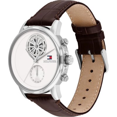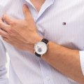 Dit Tommy Hilfiger horloge heeft een kast gemaakt van Staal zilver met een diameter van 40 mm en is voorzien van een leer band. In de kast bevindt zich een Seiko Instruments Inc. kwaliteitsuurwerk en is afgewerkt met Mineraalglas.