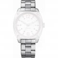 Dit Tommy Hilfiger horlogebandje is gemaakt van roestvrij staal en wordt aan het horloge bevestigd door middel van bandpennen. De band heeft een breedte van 18 mm en wordt gesloten door middel van een vouwsluiting met drukknoppen. De band heeft geen rechte aanzet wat betekent dat deze band alleen geschikt is voor de horloges die hieronder worden vermeld.