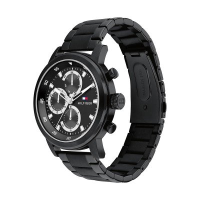 Dit Tommy Hilfiger horloge heeft een kast gemaakt van Staal zilver met een diameter van 46 mm en is voorzien van een Staal zilver band. In de kast bevindt zich een Seiko Instruments Inc. kwaliteitsuurwerk en is afgewerkt met Mineraalglas.
