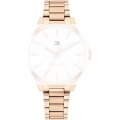 Dit Tommy Hilfiger horlogebandje is gemaakt van roestvrij staal en wordt aan het horloge bevestigd door middel van bandpennen. De band heeft een breedte van 15 mm en wordt gesloten door middel van een vouwsluiting met drukknoppen. De band heeft geen rechte aanzet wat betekent dat deze band alleen geschikt is voor de horloges die hieronder worden vermeld.