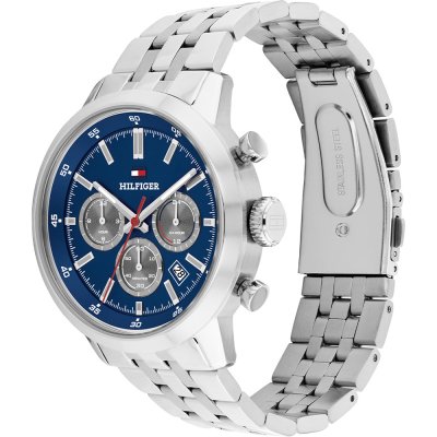 Dit Tommy Hilfiger horloge heeft een kast gemaakt van Staal zilver met een diameter van 43 mm en is voorzien van een Staal zilver band. In de kast bevindt zich een Seiko Instruments Inc. kwaliteitsuurwerk en is afgewerkt met Mineraalglas.