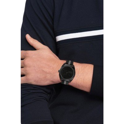 Dit Tommy Hilfiger horloge heeft een kast gemaakt van Resin met een diameter van 44 mm en is voorzien van een textiel band. In de kast bevindt zich een Seiko kwaliteitsuurwerk en is afgewerkt met Mineraalglas.