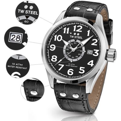 Dit TW Steel horloge heeft een kast gemaakt van Staal zilver met een diameter van 45 mm en is voorzien van een textiel band. In de kast bevindt zich een Seiko Instruments Inc. kwaliteitsuurwerk en is afgewerkt met Gehard mineraalglasglas.