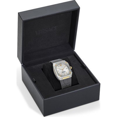 Dit Versace horloge heeft een kast gemaakt van Staal zilver met een diameter van 41 mm en is voorzien van een leer band. In de kast bevindt zich een Ronda kwaliteitsuurwerk en is afgewerkt met Saffierglas.
