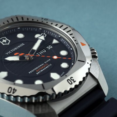 De Victorinox Dive Pro quartz horloges zijn verkrijgbaar in zowel staal als titanium en met verschillende banden, van felgekleurd rubber tot praktisch paracord. Wat ze delen is een krachtig Zwitsers Ronda quartz uurwerk, ISO 6425 certificering, 30 ATM waterdichtheid, een unidirectionele draaibare bezel en goed zichtbare indexen en wijzers. Het horloge is ontworpen, gemaakt en getest in de eigen fabriek van Victorinox in DelĂŠmont.