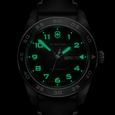 Dit Victorinox horloge heeft een kast gemaakt van Staal zilver met een diameter van 42 mm en is voorzien van een leer band. In de kast bevindt zich een Ronda kwaliteitsuurwerk en is afgewerkt met Enkelvoudig ontspiegeld saffierglasglas.