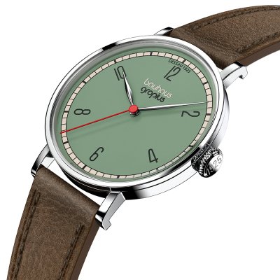 Dit Walter Gropius horloge heeft een kast gemaakt van Staal zilver met een diameter van 38 mm en is voorzien van een leer band. In de kast bevindt zich een Miyota kwaliteitsuurwerk en is afgewerkt met Dubbel ontspiegeld saffierglasglas.