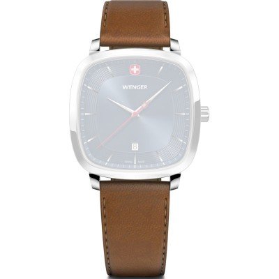 Dit Wenger horlogebandje is gemaakt van leer en wordt aan het horloge bevestigd door middel van bandpennen. De band heeft een breedte van 20 mm en wordt gesloten door middel van een gesp. De band heeft een rechte aanzet wat betekent dat deze band geschikt is voor alle Wenger horloges met een rechte aanzet.