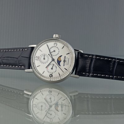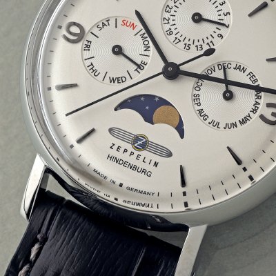 Dit Zeppelin horloge heeft een kast gemaakt van Staal zilver met een diameter van 36 mm en is voorzien van een leer band. In de kast bevindt zich een Miyota kwaliteitsuurwerk en is afgewerkt met K1 Mineraalglas.