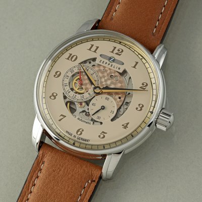Dit Zeppelin horloge heeft een kast gemaakt van Staal zilver met een diameter van 42 mm en is voorzien van een leer band. In de kast bevindt zich een Miyota kwaliteitsuurwerk en is afgewerkt met K1 Mineraalglas.